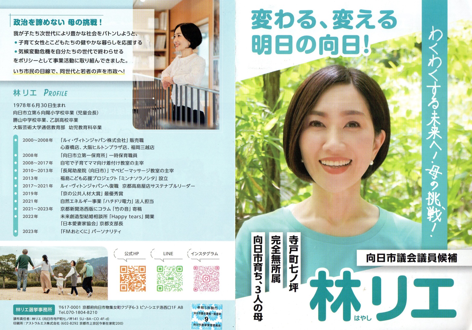 長谷川愛 ( はせがわ愛 )向日市 市議会議員候補の選挙公報